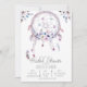 Cette belle invitation de Dreamcatcher a une sensation simpliste pourtant lunatique avec son dreamcatcher, fleurs, bijoux et plumes d'aquarelle. Une première impression parfaite pour une douche nuptiale de Bohème !