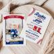 ROOKIE BASEBALL - Cette Rookie de l'année Baseball Birthday Invitation présente des polices de sports bleues et rouges, batte de baseball, baseball, couture de baseball, et est livré avec un adorable support photo de carte de cookies! Cette invitation d'anniversaire de baseball est sûr de compléter n'importe quel thème de fête d'anniversaire de baseball! En utilisant le logiciel Zazzle facile à utiliser (pas de téléchargement nécessaire) directement dans votre navigateur, vous achetez et personnalisez tout simplement au même endroit. C'est aussi facile que ça !