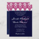 Cette conception rose, de blanc et de bleu marine de damassé fait un faire-part de mariage élégant, et est actuellement décrite sur un papier métallique hued de glace qui donne à votre invitation un miroitement et une lueur spéciaux. Vous pouvez expérimenter avec différents types de papier pour obtenir juste le regard que vous voulez.