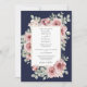 Un faire-part de mariage moderne et design avec de jolies fleurs roses et une typographie élégante avec un arrière - plan bleu marine. Conçu par Thisisnotme©
