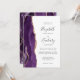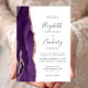 Le bord gauche de cette élégante faire-part de mariage moderne est orné d'une bordure d'aquarelle violette ornée d'une parties scintillant d'or rose. Le texte personnalisable combine écriture manuscrite grise au fusain, cuivre et polices italiques sur un arrière - plan blanc. L'envers est assorti d'une agate d'or violet et rose.