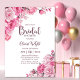 Cette élégante invitation à la douche à la nuptiale à fleurs rose de pays rose incarne le romantisme et la beauté qui capte l'essence de l'amour et de la joie entourant votre prochain mariage. Les roses roses roses vibrantes occupent le devant de la scène, symbolisant l'amour, la chaleur et la compassion. La typographie personnalisable vous permet de personnaliser l'invitation avec votre nom, votre date de douche et toutes les autres informations essentielles.