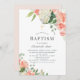 Cette élégante invitation au baptême de fille présente un arrière - plan blanc avec roses couleur pêche et hydrangée blanche en aquarelle. Personnalisez-le selon vos besoins. Vous trouverez des produits correspondants dans mon magasin