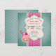 Invitations adorables de partie pour un anniversaire de petite fille. La sarcelle d'hiver, arrière - plan de point de polka comporte un ruban de roses indien avec la dentelle blanche et un décalque décoratif qui juge votre information de partie équilibrée avec un petit gâteau rose de fantaisie.