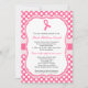 Cette invitation moderne est idéale pour célébrer un événement de collecte de fonds pour aider à soulever la conscience au sujet du cancer du sein. Elle comporte un ruban rose dans un cadre fleuri sur un arrière - plan de pois tout dans une palette de couleurs rose et blanche. Conception chic et élégante grande pour cette cause réfléchie.