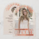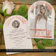 Célébrez les réalisations de votre diplômé avec cette faire-part et invitation distinctive et féminine. Customisez ce deux (2) photo design avec vos détails personnels. Le mot GRADUATE et le graphique à arc floral ont un faux or rose métallique et un effet en relief subtil. Le mot "diplômé" ne peut pas être changé. Le reste du texte de la carte est modifiable.