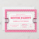 Invitez chacun à votre soirée cinéma d'anniversaire avec cette invitation d'amusement conçue comme un billet d'admission de film. Le billet blanc, avec le texte dans de jolis roses sur un point de polka de rose d'amusement a modelé l'arrière - plan. En outre disponible dans une série de modèles de couleurs supplémentaires.