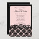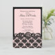 Commencez votre événement outre de la droite avec notre invitation nuptiale de douche comportant le beau cadre de remous avec un arrière - plan rose et noir du fond de damassé. Combinaison de couleurs rose et noire à la mode. Customisez juste notre invitation avec votre information de mariage et vous êtes tous placez pour aller. © Mujka Design Inc