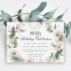 Célébrez un 80ème anniversaire dans un style féminin magnifique avec cette élégante invitation de fête d'anniversaire rose floral. Le texte de votre événement est entouré d'une couronne d'aquarelle fleurie de roses roses et de verdure. Tout le texte peut être personnalisé avec votre texte personnalisé de partie, y compris l'âge. Vous pouvez également utiliser ce modèle d'invitation pour d'autres âges en personnalisant le numéro 80 à votre numéro d'âge souhaité.