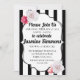 Cette invitation est très chic et féminine. Les rayures noires et blanches donnent au design une touche moderne et parisienne tandis que les roses le rendent délicat et féminin. Cette invitation est parfaite pour les anniversaires, les quinceanera, les baby showers et diverses occasions spéciales.