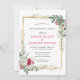 Un cadre doré large entoure les détails de votre fiançailles. Il est décoré de roses rouges et blancs nichés dans des baies sèches, des feuilles d'eucalyptus et des feuillages botaniques d'hiver. Cette belle invitation fait partie d'une collection qui a les modèles pour vous de créer des invitations et des fournitures de fête.