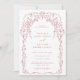 Elégant Cadre Rose foncé Inspiré Victorien, faire-part de mariage. Caractéristiques modèles, typographie tendance avec détails modèle sur le dos.