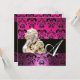 Design élégant, classe et unique en rose, fuchsia, noir, blanc avec un bijou Art nouveau doré sur fond de papier métallisé champagne aux couleurs vives. Facile à personnaliser avec vos initiales et votre propre texte en tant que carte de faire-part / marque-place / carte save-the-date / carte de remerciement, pour des enterrements de vie de jeune fille, des anniversaires, des soirées, des fêtes de fiançailles, des anniversaires de mariage ou tout autre événement que vous souhaitez !
