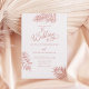 Parfait pour les mariages de destination à la plage, cette invitation de mariage comporte des feuilles tropicales rose gold avec une typographie script tendance et amusante.