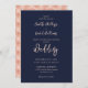 Invitation Rose Gold Marine Bleu moderne Script Mariage