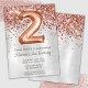 Rose Gold Silver 2e anniversaire Invitation de fête et or rose élégant moderne 2e anniversaire invitation pour une fille de 2 ans avec écriture de script moderne et des ballons de papier amusant.