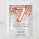 Rose Gold Silver 7th Birthday Party Invitation et or rose élégant moderne 7th anniversaire invitation pour une fille de 7 ans avec écriture de script moderne et des ballons de papier amusant.