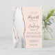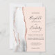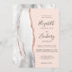 Le bord gauche de cette élégante faire-part de mariage moderne est orné d'une bordure en aquarelle grise et blanche, bordée d'une parties scintillant en or rose. Le texte personnalisable combine écriture manuscrite, copperplate et polices italiques en ardoise noire sur un arrière - plan rose vif. L'envers est assorti d'un motif d'agate gris, blanc et rose en or.