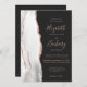 Le bord gauche de cette élégante faire-part de mariage moderne est orné d'une bordure en aquarelle grise et blanche, bordée d'une parties scintillant en or rose. Le texte personnalisable combine écriture rose, cuivre et polices italiques sur un arrière - plan noir en ardoise. L'envers offre de l'espace pour les détails mariages sur un arrière - plan en ardoise solide, ainsi qu'un code QR que les clients peuvent scanner pour visiter votre site Web et RSVP, ce qui permet d'économiser le coût d'impression et d'envoi de cartes RSVP séparées.