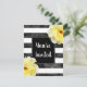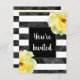 Invitation imprimée à partir de rose jaune originale sur la peinture rayée noir et blanc aquarelle.