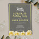 Invitation à la fête surprise du 70e anniversaire moderne pour elle. Invitation d'anniversaire avec de belles fleurs de rose jaune. L'arrière - plan est gris. Le texte est en blanc et jaune et est facilement personnalisable - personnalisez-le avec votre nom, âge, date, emplacement et RSVP. Parfait pour une femme qui fête son soixante-dixième anniversaire. Invitation pour 70 ans fête d'anniversaire surprise. Vous pouvez utiliser cette invitation pour n'importe quel âge que vous voulez - il suffit de changer l'âge.