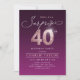 Invitation Rose moderne or violet surprise 40e anniversaire