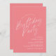 Simplistes et jolies invitations de fête d'anniversaire avec une police blanche sur un arrière - plan rose vif. En-tête du texte "fête d'anniversaire" dans une police manuscrite de script. Convient à tout âge.