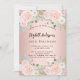 Une invitation moderne, élégante et glamour pour une fête d'anniversaire de 50ème (ou tout âge). Un arrière - plan d'or rose aux fleurs roses rousses, rose. Le nom est écrit avec un script de style moderne écrit à la main. Personnalisez et ajoutez les détails de votre fête.