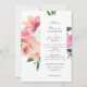 Invitation Rose Pâle & Fleurs Botaniques Grises Mariage V2