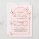 Un arrière - plan d'or rose avec un rose d'or et d'arc rose. Décoré de papillons. Personnalisez et ajoutez le nom de la mère à être et les détails de la fête. Texte : Un petit papillon est en route. Dos : or rose couleur arrière - plan.