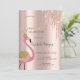 Invitation Rose Parties scintillant or gouttes Flamant rose r