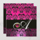 Invitation ROSE PURPLE BLACK DAMASK MONOGRAM Amethyst Fuchsia