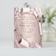 Invitation Rose rose 3D effet pailleté initiales