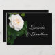 Une faire-part de mariage entièrement personnalisable avec une rose rose rose pâle sur un arrière - plan noir et des lettres blanches. Les noms de la mariée et du marié sont à l'avant et vous pouvez ajouter les détails à l'arrière. Cependant, vous pouvez choisir comment, quoi et où avoir le texte.