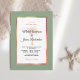 Invitation vos invités pour vous aider à célébrer votre journée spéciale avec cette élégante invitation avec script moderne, cuivre or rose et texte noir y compris un palmier artistique et cadre en cuivre or rose métallique sur le devant. Parfait pour une plage ou une mariage extérieure. Un arrière - plan vert sage se trouve à l'avant et à l'arrière de la carte. Si vous avez besoin d'aide ou d'une commande personnalisée, veuillez me contacter.