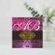 Invitation ROSE VIOLET NOIR DAMAS MONOGRAMME, blanc