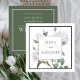 Roses blanches Elégant Faire-part de mariage vert floral conçu avec des fleurs de rose blanche sur un Arrière - plan blanc avec des accents de fleurs vertes et bordure. Le texte avant comprend les prénoms de la mariée et de la mariée. Le texte de l'envers comprend : Les noms complets de la mariée et de la chambre, la date, l'heure et l'emplacement du Mariage, sur un arrière - plan vert, encadré d'une double bordure blanche. Pour personnaliser, insérez simplement vos détails dans notre modèle facile, en remplaçant l'exemple de texte.