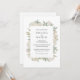 Elégante faire-part de mariage botanique avec un cadre de roses blancs et ivoire immaculés et de feuilles doux sur l'arrière - plan blanc classique et vos noms et tous ces détails mariages spéciaux écrits dans une police gris classe. Le verso de la carte a comme petit bouquet sur le fond. Que vous planifiez une fête d'été chic ou une soirée de printemps romantique, cette invitation donne le ton parfait pour votre journée spéciale.