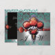 INVITATION ROSES CORAIL ROUGES, MONOGRAMME DAMASSÉ NOIR VERT