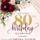 Invitation Roses d'or boho maroon élégant 80e anniversaire