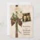 Bouquet de roses ivoire avec perles sur fond de damas et photo personnalisée pour le couple honoré.