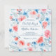 Faire-part de mariage floral romantique et élégant avec des roses rose clair et des fleurs bleues aquarelles design botanique. Côté inverse de l'invitation est en belle couleur bleu pâle.