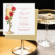 Roses rouges sur l'invitation de réception de mariage de douche de champagne. Nom en script moderne rouge. Texte rouge. Image aquarelle. Réception de mariage rouge. Douche de roses rouges.