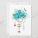 Clé d'or antique aux roses turquoise tendance décorée de feuilles d'or blanc et de perles rose et bleu. Couleur tendance. Rose turquoise. Blanc doré. Tiffany bleu.