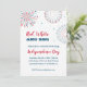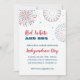 Cette invitation de feux d'artifice est parfaite pour une fête du 14 juillet. Ce design Rouge, Blanc et BBQ présente des feux d'artifice colorés et une typographie amusante.