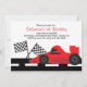 Commencez votre célébration par cet invitation parfait de voiture de course. Faites à l'anniversaire de ce garçon spécial mémorable ! C'est une voiture de course bleue lumineuse sur une route. Elle a 2 drapeaux checkered noirs et blancs onduler devant la voiture. Personnalisez-la avec votre information de partie. Vérifiez les nombreux autres produits et couleurs dans cette ligne. Illustrations du © JW