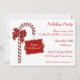 Une invitation de fête de fête de vacances avec du sucre de canne rouge et blanc et le ruban et l'arc rouges de faux. Facile à customiser avec vos détails de partie. Les invitations viennent avec des enveloppes et votre choix de papier.