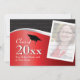 Cette invitation rouge et noire chique d'obtention du diplôme peut être customisée avec la photo et le texte de votre choix. L'invitation inclut un bruissement rouge et noir avec des couleurs d'accent de blanc et d'argent.