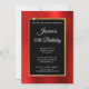 Créez votre propre fêté d'anniversaire de style stylisé 5x7 invitation style pour elle. L'arrière - plan décoratif présente un faux papier peint rouge vif, du papier peint doré et une solide couverture rectangulaire noire. Déplacez ou supprimez le faux graphique brillant blanc. Customisez les styles, la couleur et la taille des polices blanches. La feuille moderne de luxe est créée avec des éléments d'art numérique qui s'impriment comme une photo. Fabuleux invitation d'anniversaire de fille pour votre meilleur ami.