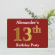 Invitation Rouge, Faux Gold 13e fête d'anniversaire + Nom per